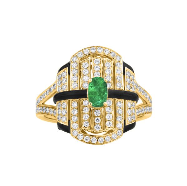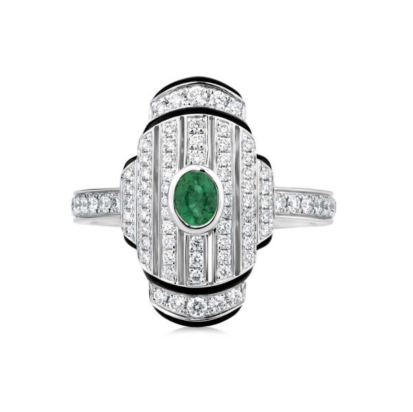 Architectural lines, rhythmic repetition, and gemstone contrast revive Art Deco with contemporary luxury refinement.